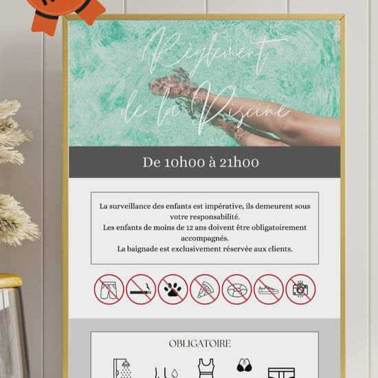 Une affiche "règlement piscine" modifiable format A3 ou A4 Français