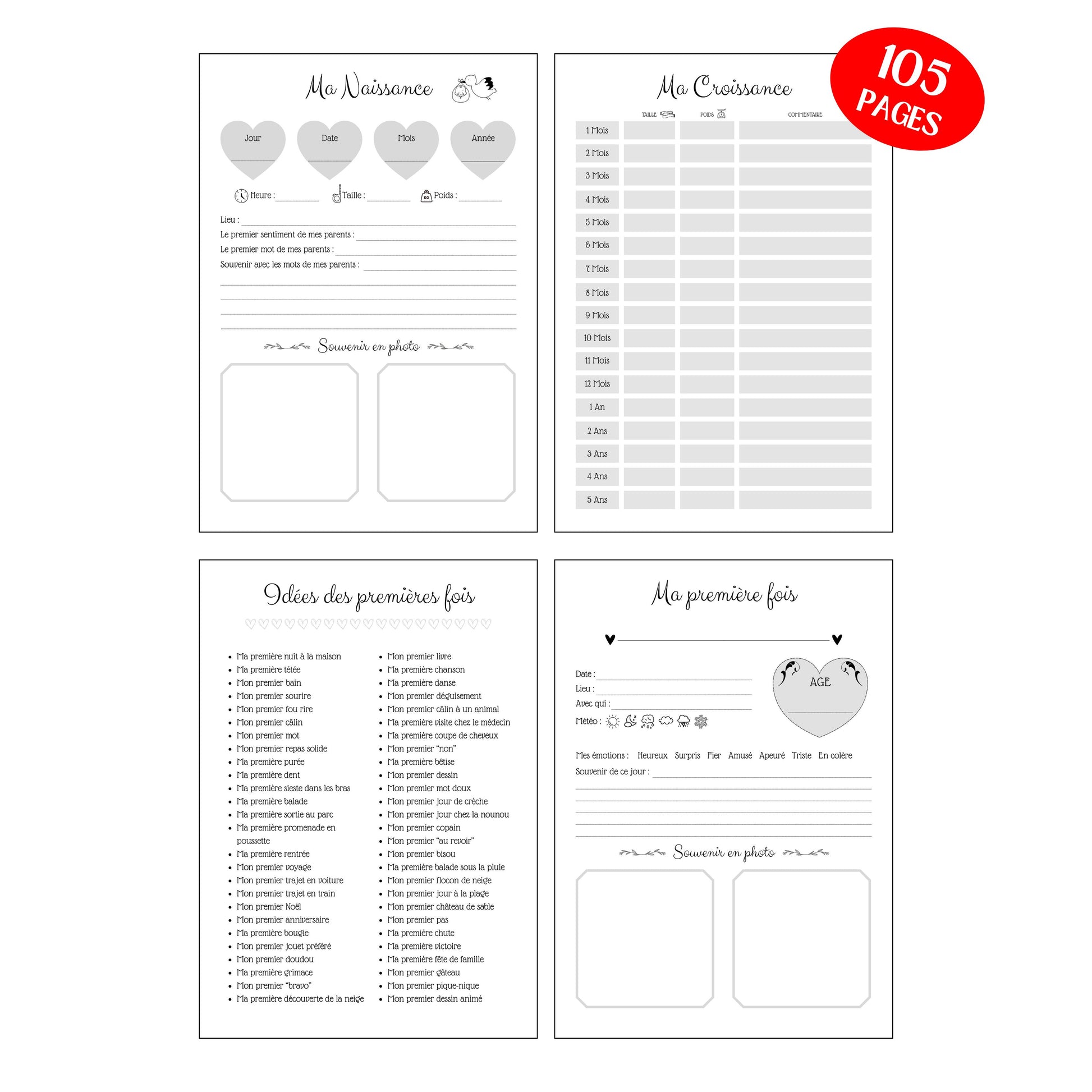 De la naissance aux premiers pas, en passant par les rires, les mots, les découvertes… chaque page invite à écrire, coller, raconter, et revivre ces moments uniques.
